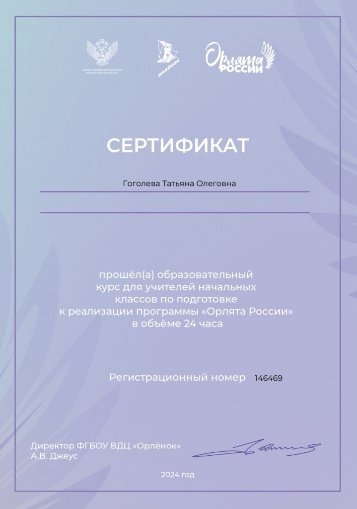 Образовательный курс по подготовке к реализации программы "Орлята России", 24 часа, 2024 г. |