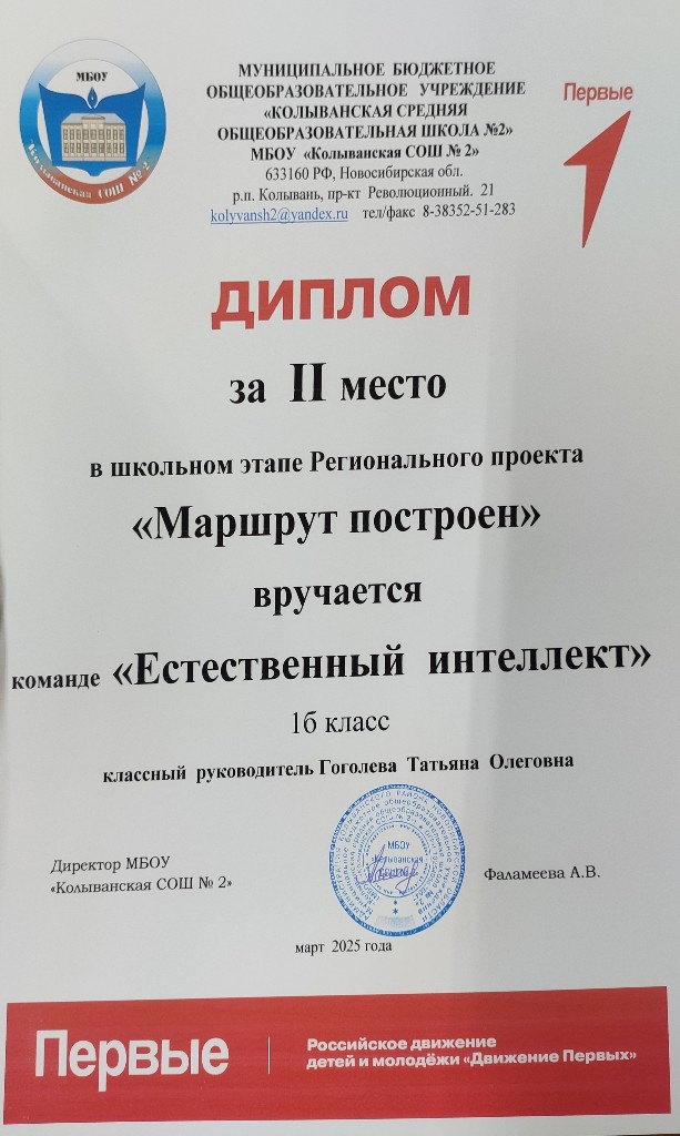 Участие в школьном этапе Регионального конкурса "Маршрут построен" 2 место, 2025 г. |