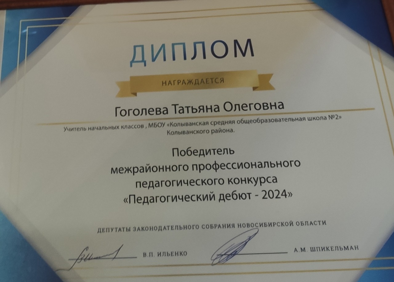 Победа в номинации "Портфолио педагога" межрайонного конкурса профессионального мастерства "Педагогический дебют", 2024 г. |