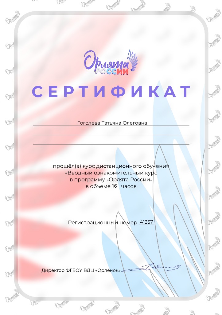 "Вводный ознакомительный курс в программу "Орлята России", 16 часов, 2023 г. |