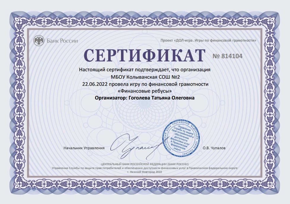 Проведение игры по финансовой грамотности "Финансовые ребусы", 2022 г. |