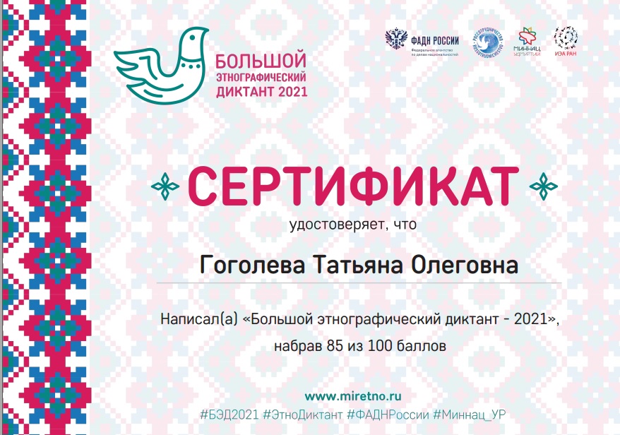 Участие в "Большом этнографическом диктанте", 2021 г. |