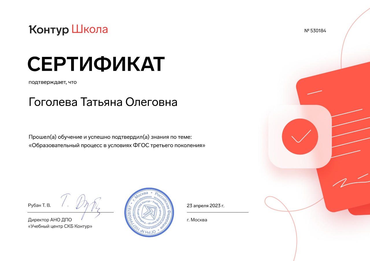 "Образовательный процесс в условиях ФГОС третьего поколения", 2023 г. |