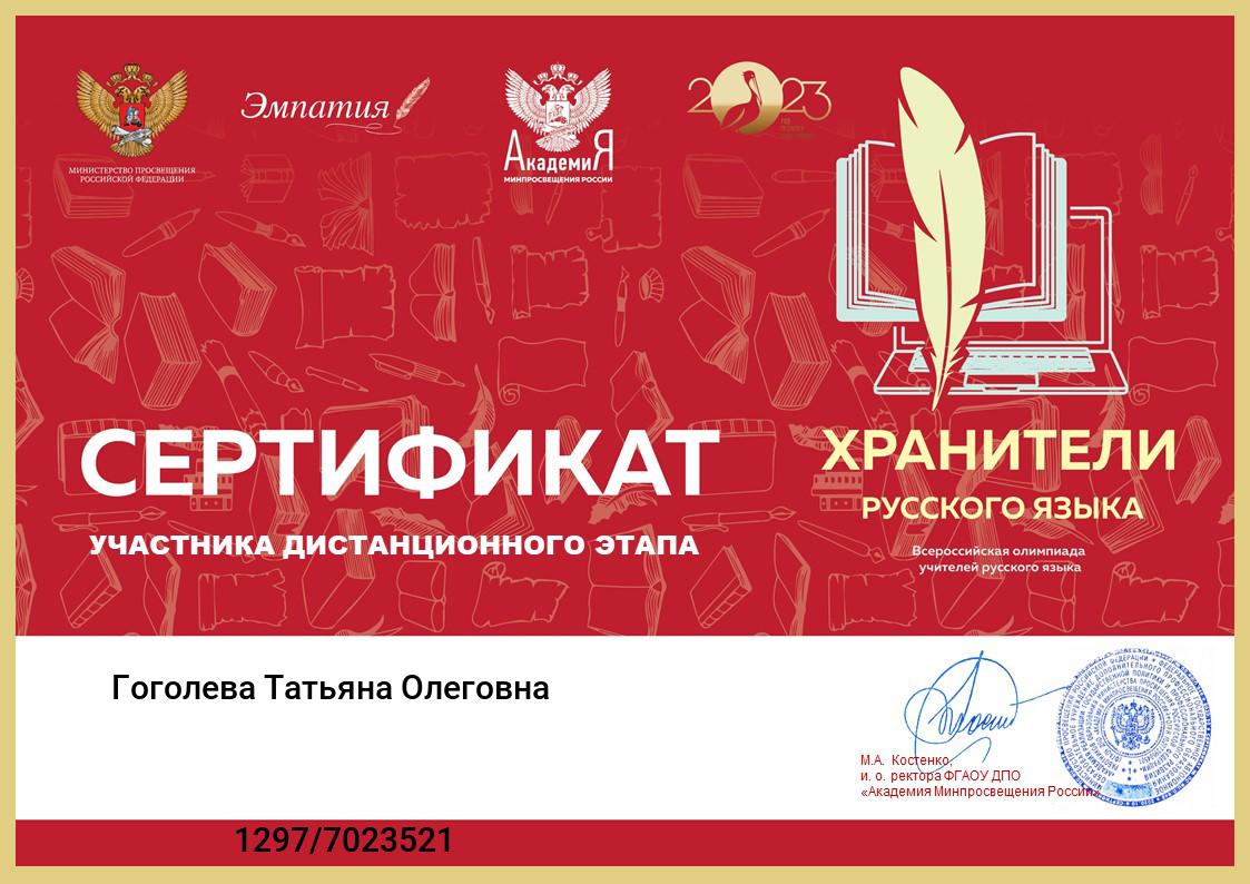 Участие во Всероссийской олимпиаде учителей русского языка "Хранители русского языка", 2023 г. |