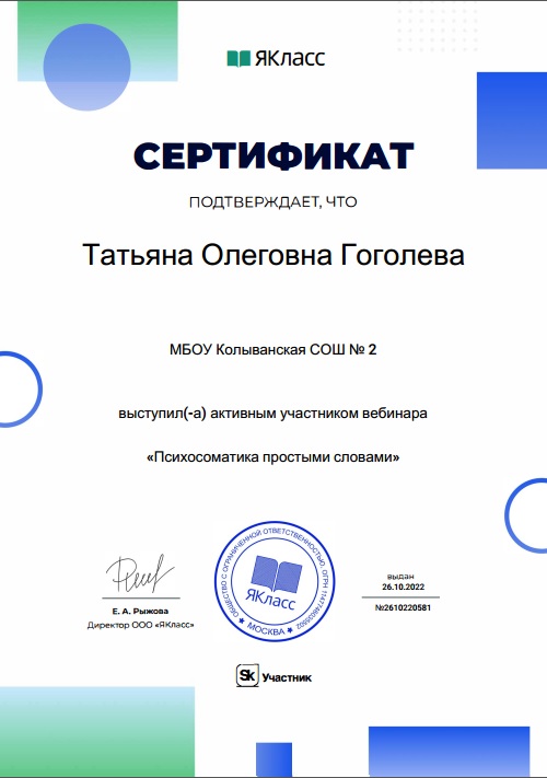Вебинар "Психосоматика простыми словами", 2022 г. |