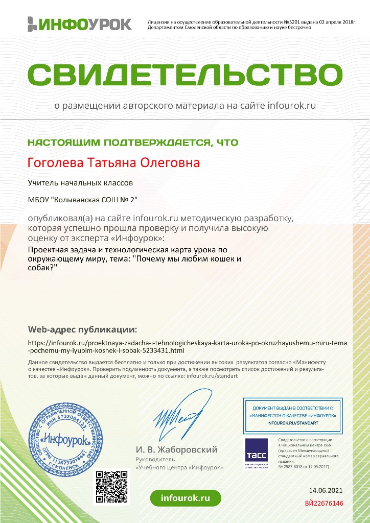 Свидетельство о публикации собственной методической разработки на сайте infourok.ru, 2021 г. |