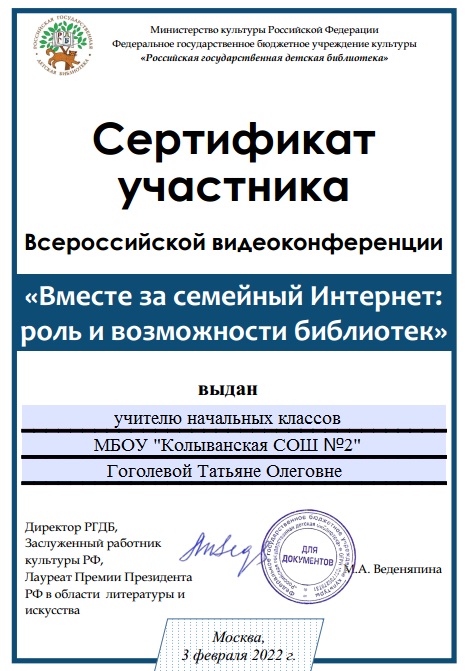 Всероссийская видеоконференция "Вместе за семейный Интернет: роль и возможности библиотек", 2022 г. |